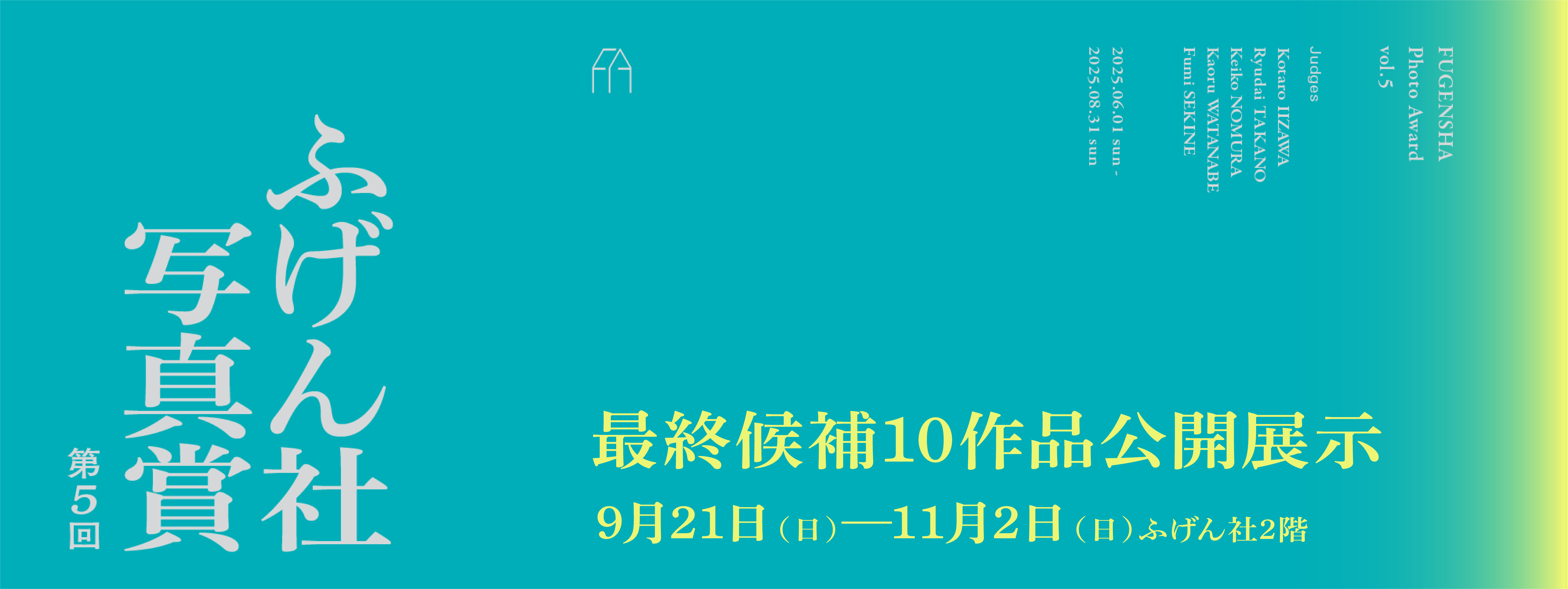 2025/09/21(日) - 2025/11/02(日) 第5回ふげん社写真賞最終候補10作品 公開展示 Exhibition このたび、2025年9月21日(日)から11月2日(日)まで、「第5回ふげん社写真賞」最終候補10作品の公開展示をふげん社2階で開催いたします。 「ふげん社写真賞」は、渡辺美術印刷株式会社創立70周年記念事業として2020年に創設されました。グランプリ受賞者には、写真集出版とふげん社での個展開催の権利が与えられます。 「第5回ふげん社写真賞」は6月〜8月に作品募集を行い、9月半ばに開催された第一次選考会(非公開)での厳正なる審査の結果、応募総数183名から10名がノミネートされました。 10月19日(日)には、東京都写真美術館・スタジオで二次選考会(公開審査)を実施し、グランプリ受賞者1名と審査員特別賞3名が選出されます。 会場では、ファイナリスト10名の作家の応募作品を箱のまま展示しています。グローブ着用の上、ご覧ください。 ぜひ、「第5回ふげん社写真賞」のゆくえを、皆さんで見守っていただけますと幸いです。 皆様のご来場をお待ちしております。 ■開催概要 第5回ふげん社写真賞 最終候補10作品 公開展示 会期:2025年9月21日(土)〜11月2日(日) ※10月19日(日)は二次選考会(公開審査)のため、展示はありません。 火〜金 12:00〜19:00 土・日 12:00〜18:00 休廊:月曜日、10月19日(日) 場所:ふげん社 2階 〒153-0064 東京都目黒区下目黒5-3-12 TEL:03-6264-3665 ファイナリスト: 蓮井 元彦(はすい もとひこ) 筑紫 仁子(ちくし さとこ) Sam Pritchard(サム・プリチャード) 橋本 晃(はしもと あきら) 中野 泰輔(なかの たいすけ) 狩野 萌(かのう めぐみ) 佐藤 航嗣(さとう こうじ) 梶 瑠美花(かじ るみか) 石川 幸史(いしかわ こうじ) 木全 虹乃楓(きまた このか) ■「第5回ふげん社写真賞」概要 グランプリ1名には、写真集出版とふげん社ギャラリーで出版記念展を開催する権利を授与します。 審査員特別賞3名には、奨励賞を授与いたします。 国籍、年齢、プロ、アマチュアは問いません。 10月19日(日)に東京都写真美術館・スタジオで開催する、二次選考に参加できる方に限ります。 一人一作品(シリーズ)に限ります。参加費は5500円。 選考員: 飯沢耕太郎(写真評論家) 鷹野隆大(写真家) 野村恵子(写真家) 渡辺薫(ふげん社代表) 関根史(ふげん社ディレクター) https://www.fugensha-award.com/ ■第二次選考会(公開審査)について 10月19日(日)に東京都写真美術館・スタジオで二次選考会を行います。 本選考会は公開審査で、会場観覧の申込を受け付けます。また、オンライン配信も予定しております。 詳細が決定しましたらふげん社写真賞の公式サイトやSNSで告知させていただきます。