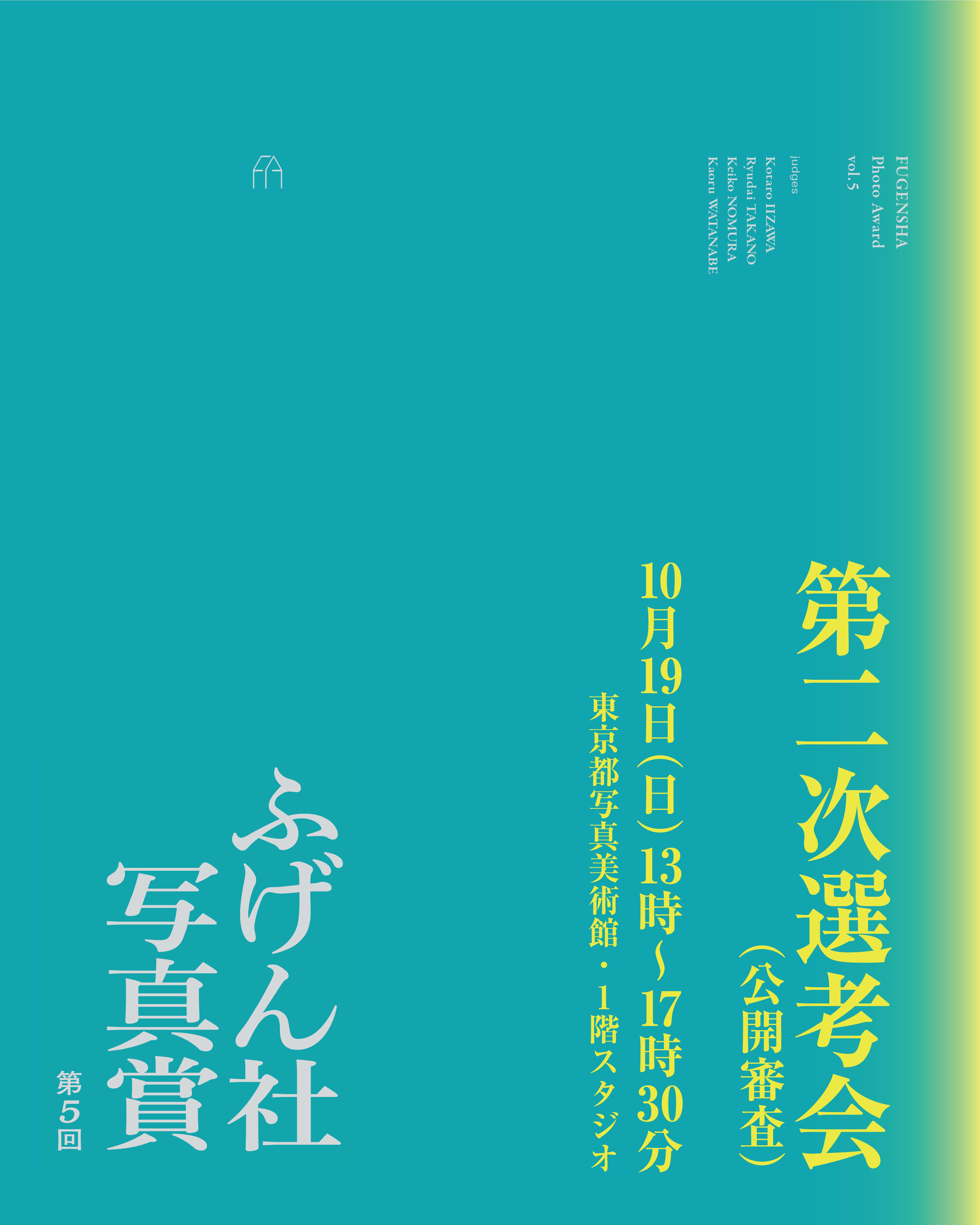 2025/10/19(日) 第5回ふげん社写真賞第二次選考会(公開審査) Event このたび、2025年10月19日(日)に「第5回ふげん社写真賞」の二次選考会(公開審査)を、東京都写真美術館・スタジオにて開催いたします。開催に伴いまして、一般観覧席(定員30名)の募集と、同時ライブ配信視聴のお申し込みを受け付けます。 「第5回ふげん社写真賞」は、9月半ばに実施された第一次選考会(非公開)での厳正な審査の結果、応募総数183名の中から10名がノミネートされました。 二次選考会(公開審査)では、10名の中から、グランプリ受賞者1名と審査員特別賞3名を選出いたします。 一般観覧席(定員30名)と同時ライブ配信はいずれも無料ですが、お申し込みが必要です。 以下の注意事項をご一読の上お申し込みください。 なお、ふげん社2階では、11月2日(日)まで、最終候補10作品の公開展示を行なっております。 選考会の前後で、ぜひ直接ファイナリストたちの作品をご覧いただき、第5回ふげん社写真賞のゆくえを、みなさんご一緒に見守っていただけますと幸いです。 ■開催概要 第5回ふげん社写真賞 第二次選考会(公開審査) 日時:2025年10月19日(日)13:00〜17:30 会場:東京都写真美術館・スタジオ(1階) 〒153-0062 東京都目黒区三田1丁目13−3 恵比寿ガーデンプレイス内 主催:ふげん社 選考員: 飯沢耕太郎(写真評論家) 鷹野隆大(写真家) 野村恵子(写真家) 渡辺薫(ふげん社代表) 関根史(ふげん社ディレクター) タイムスケジュール: 12:30 開場 13:00 開会 13:15 審査1:蓮井 元彦 13:30 審査2:筑紫 仁子 13:45 審査3:Sam Pritchard 14:00 審査4:橋本 晃 14:15 審査5:中野 泰輔 14:30-14:45 休憩(15分) 14:45 審査6:狩野 萌 15:00 審査7:佐藤 航嗣 15:15 審査8:梶 瑠美花 15:30 審査9:石川 幸史 15:45 審査10:木全 虹乃楓 16:00-16:45 協議(45分) ※協議の時間は、みなさん会場から一旦ご退室いただきます。あらかじめご了承の上ご参加ください。 17:00-17:30 結果発表(グランプリ1名および審査員特別賞3名を選出) 17:30 閉会 ■参加方法 ふげん社オンラインストアからチケット(無料)をお申し込みください。 ※もしふげん社オンラインストアからの手続きに不具合が生じた場合は、ふげん社までご連絡ください。 お問い合わせ先→TEL:03-6264-3665 Mail:fugensha.store@gmail.com ◉会場観覧チケットのお申し込みはこちら(定員:30名) 注意事項: ・16:00-16:45(45分)の協議時間は、みなさん会場から一旦ご退室いただきます。 16:45から再入場いただけます。あらかじめご了承の上、ご参加ください。 ・動画の撮影と音声の録音はご遠慮ください。 ・お申し込み後にキャンセルされる場合は、ふげん社までご連絡ください。 ◉ライブ配信チケット(アーカイブ配信なし)のお申し込みはこちら 注意事項: ・配信は「YouTubeライブ」を使って実施いたします。ご試聴には、パソコン/スマートフォン/タブレットが必要になりますので、予めご用意ください。 ・ふげん社ストアでご購入後に表示されるPDF(ファイル名:251019_fugenshaphotoaward_online)をダウンロードください。ファイル内に視聴URLが掲載されています。もし不具合がありましたら、ふげん社(TEL:03-6264-3665 Mail:fugensha.store@gmail.com)までご連絡ください。 ・申込者限定でご覧いただける配信です。SNS等へのURLの転載や、動画の転載は固くお断りいたします。・配信直前のお問い合わせは対応ができません、時間に余裕を持ってお申し込み・確認をお願いします。 ・STORES.JPで申込完了のステータスに変わらないとダウンロードのリンクは表示されません。購入後、「支払い(決済)完了」ステータスになる前にPDFや配信URLはお送りできませんのでご了承ください。 ・ネット環境の不良・接続の問題等でご試聴いただけない場合の責任は負いかねます、あしからずご了承ください。 ■ファイナリストのご紹介(エントリーNo.順) 蓮井 元彦(はすい もとひこ) 応募作品:「アフターオール」 写真家。1983 年 東京都出身。2003 年渡英、Central Saint Martins Art and Design にてファウンデーションコースを履修した後、London College of Communicationにて写真を専攻。卒業後、2007 年帰国。以降、東京を拠点に活動する。主な写真集に『Personal Matters』(Bemojake)、『for tomorrow』(Libro Arte)、『VIATOR / SWELL』(Libro Arte)などがある。 筑紫 仁子(ちくし さとこ) 応募作品:「June.1973」 写真家。東京都生まれ。 大学卒業後に、東京綜合写真専門学校に入学。写真芸術第一学科に在籍し、主に4×5で作品を撮る。卒業後は建築写真会社のアシスタントとして働き、現在は会社員をしながら制作を続けている。 Sam Pritchard(サム・プリチャード) 応募作品:「A Classroom with a View」 イギリス出身。ロンドンで写真芸術を学び、デザイン事務所にレタッチャーとして勤務。2008年に来日し、現在は長野県在住。日本の都市と山間の田園を往復し、その対照を主題に制作を続けている。 橋本 晃(はしもと あきら) 応募作品:「反場所: Contre-espaces」 1993年神奈川県生まれ。東京綜合写真専門学校研究科卒業。 都市空間のスナップや日々の記録観察を通じて見えてくる自己の視線や意識