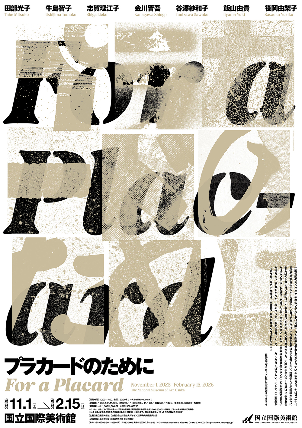 外部イベント 「プラカードのために」(国立国際美術館)に金川晋吾が出品 2025.10.16 NEW このたび、2025年11月1日(土)から2026年2月15日(日)まで、国立国際美術館 B3階展示室にて開催される「プラカードのために」に、金川晋吾さんが出品します。 美術家・田部光子(1933–2024)は、1961年に記した短い文章の中で、「大衆のエネルギーを受け止められるだけのプラカードを作」り、その「たった一枚のプラカードの誕生によって」社会を変える可能性について語っています。本展は、田部の言葉と作品を出発点とし、それぞれの生活に根ざしながら「生きること」と「尊厳」について考察してきた、田部を含む7名の作家による作品で構成します。 金川晋吾さんは、現在進行形で取り組む二つのシリーズ「祈り/長崎」と「明るくていい部屋」を展示します。 美術館内のミュージアムショップでは、金川晋吾写真集『明るくていい部屋』と、同じく出品作家である志賀理江子さんが巻頭を飾った、雑誌『写真』vol.6「ゴースト/Ghost」をお取り扱いいただきます。 皆様、ぜひお出かけください。 ■開催概要 「プラカードのために」 会期:2025年11月1日(土)〜2026年2月15日(日) 開場時間:10:00~17:00、金曜は20:00まで ※入場は閉館の30分前まで 休廊日:月曜日(ただし11月3日、11月24日、1月12日は開館)、11月4日、11月25日、1月13日、年末年始(12月28日〜1月5日) 会場:国立国際美術館 B3階展示室 〒530-0005 大阪府大阪市北区中之島4-2-55 出品予定作家:田部光子、牛島智子、志賀理江子、金川晋吾、谷澤紗和子、飯山由貴、笹岡由梨子 主催:国立国際美術館 協賛:公益財団法人ダイキン工業現代美術振興財団 詳細はこちら ■書誌情報 金川晋吾『明るくていい部屋』 2024年10月5日発行 著者:金川晋吾 デザイン:田中せり 発行所:ふげん社 サイズ:A4変型(h230×w200mm) 仕様:糸かがり上製本・ホローバック 頁数:152頁 写真点数:118点 定価: 4,290円(税込) ISBN 978-4-908955-35-8 ご注文はこちら 雑誌『写真』(Sha Shin Magazine) vol.6「ゴースト/Ghost」 2024年7月20日発行 発行所:ふげん社 制作:合同会社PCT 仕様:A5判変形 ISBN:978-4-908955-31-0 巻頭口絵:志賀理江子 口絵:阿部 淳、岩根 愛、苅部太郎、永瀬沙世、吉野英理香、百々俊二 ご注文はこちら